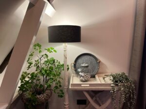 De B&B is gevestigd in het bovenhuis van onze voormalige winkel in woonaccessoires (Beau Nouveau). Die ligt op de hoek van de doorgaande Stationsweg en de Walfriduslaan. In 2023 is de winkel gesloten en zijn we langzamerhand een andere richting op gegaan.